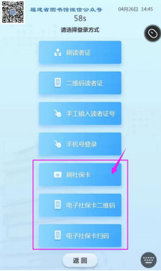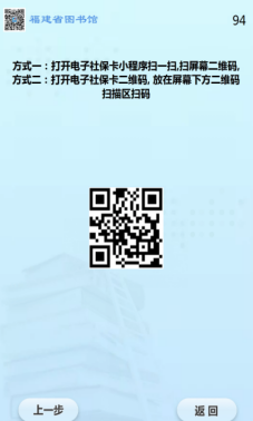 完成社保卡办证并完成微信公众号端证号绑定后,读者可持社保卡、电子社保卡或凭福建省图书馆微信公众号端二维码电子证借书。