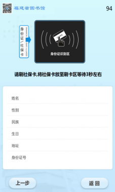 持有全国范围内的有效第三代社保卡或电子社保卡读者,可直接前往福建省图书馆通过一楼自助办证机开通办证功能。