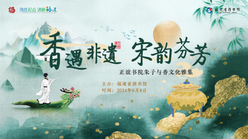 为贯彻落实习近平文化思想,围绕打造世界知名旅游目的地“11537”思路和布局,统筹做好文化保护、传承、传播、发展“四篇文章”,全面打响“海丝起点 清新福建”品牌,深入挖掘朱子文化、节庆文化的内涵,推动非遗文化传播、传承,2024年“文化和自然遗产日”期间,福建省图书馆将在正谊书院举办“‘香’遇非遗 宋韵芬芳——朱子与香文化雅集”。雅集结合朱子文化和宋文化,从香的历史入手,介绍香的种类、用途和制作技艺,结合香道表演、香牌制作体验带领读者在香气氤氲中读朱子、品宋韵。