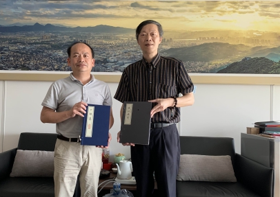 许建平副主任向泉州市图书馆陈文革馆长赠藏省图书馆整理开发的图书