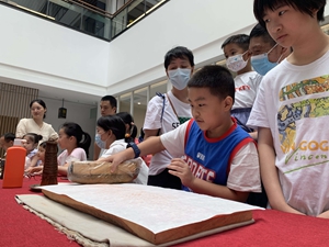 修复师现场指导小读者体验雕版印刷和瓦当传拓技艺