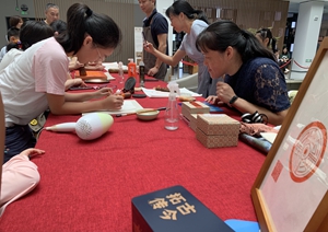 二是晒技艺。为提高读者参与度,在活动现场提供金石传拓技艺体验,由古籍修复师现场指导读者体验金石传拓技艺(雕版印刷+瓦当传拓)。不少小朋友对雕版印刷互动体验表现出了浓厚的兴趣,在修复师的指导下完成了人生中第一份雕版印刷品——《朱子家训》。其他读者也对活动的形式和内容给予了肯定,认为雕版印刷和金石传拓等活动让普通大众得以近距离感受优秀传统文化的魅力,在每个亲身参与的读者心中播下一颗保护和传承优秀传统文化的种子。