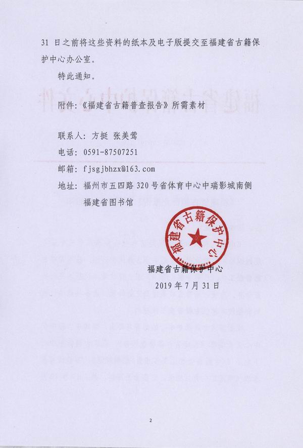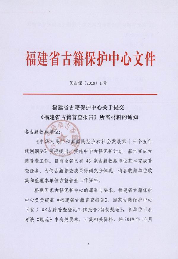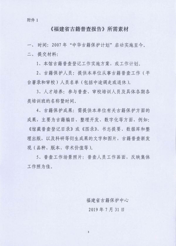 福建省古籍保护中心关于提交《福建省古籍普查报告》所需材料的通知