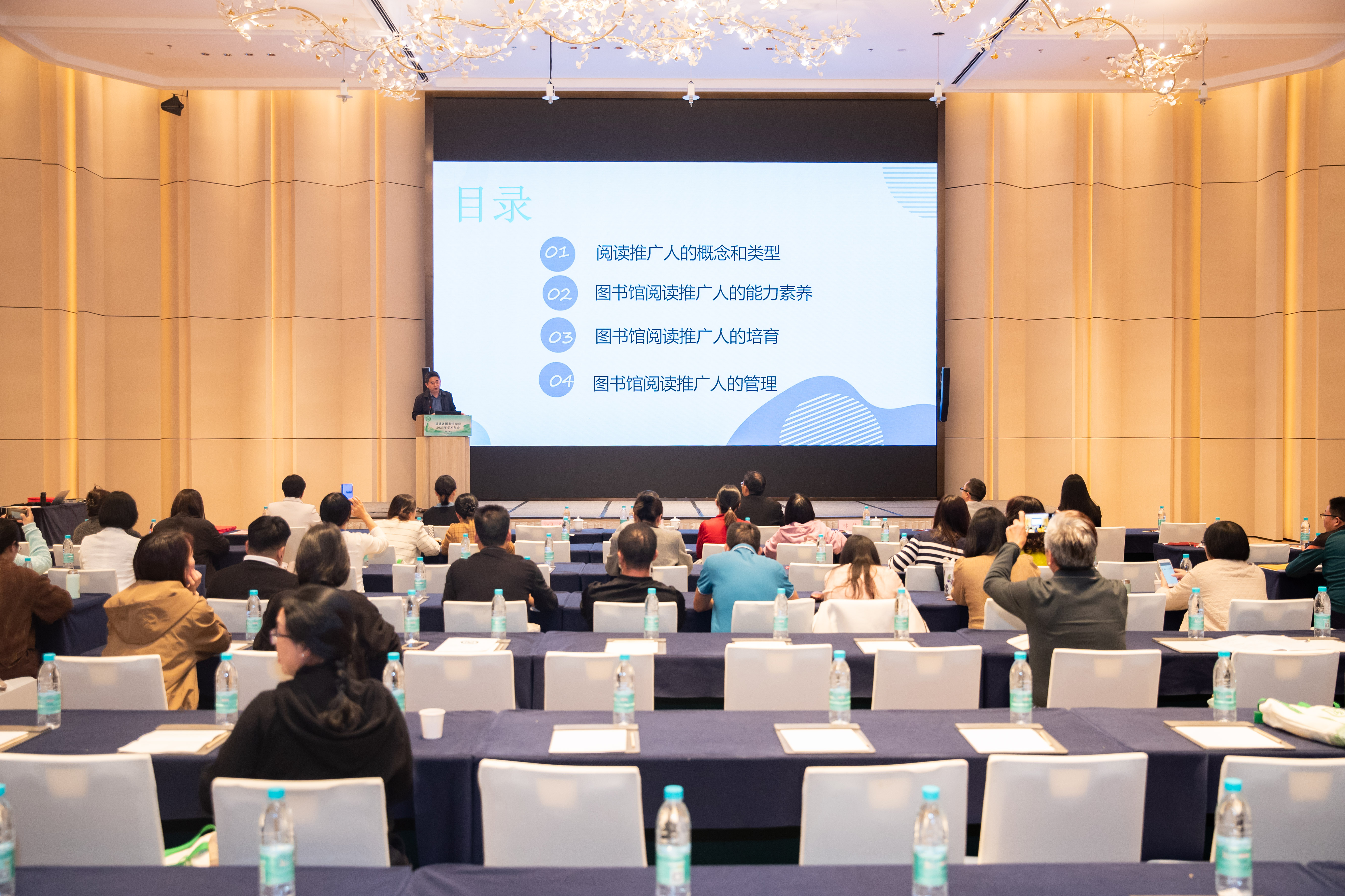 会议现场,福建师范大学图书馆学系教授、硕士生导师傅文奇作题为“图书馆阅读推广人的培育和管理”的专题报告,提出以“热爱”为核心,涵盖专业力、策划力、传播力、共情力与技术力的胜任力模型,并结合多个实践案例提出系统化提升策略。