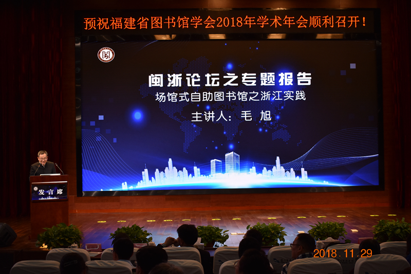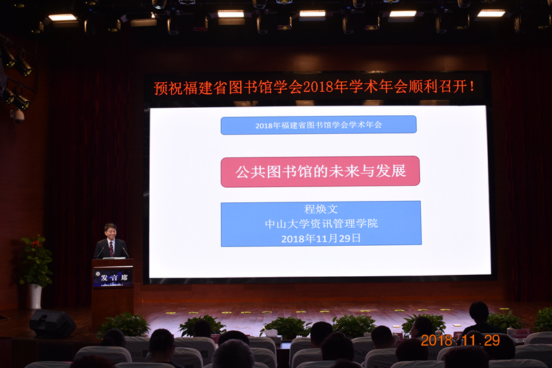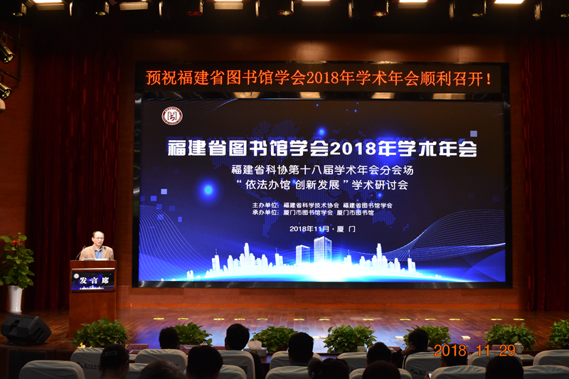 2018年11月28—30日,以“依法办馆 创新发展”为主题的我省图书馆界年度盛会——福建省图书馆学会2018年学术年会在厦门市图书馆集美新馆顺利开幕,年会同时是福建省科学技术协会第十八届学术年会分会场。福建省文化和旅游厅党组成员、副厅长林守钦,厦门市文化广电新闻出版局党组成员、副巡视员叶细致,中国图书馆学会秘书长霍瑞娟,中国图书馆学会副理事长、中山大学图书馆馆长程焕文,福建省图书馆学会理事长郑智明,浙江图书馆党委书记徐洁,学会副理事长许兆恺、江向东、林丽萍等嘉宾及来自全省各系统图书馆界的图书馆员等近350多人出席开幕仪式。林守钦副厅长、叶细致副巡视员、霍瑞娟秘书长、郑智明理事长发表致辞。