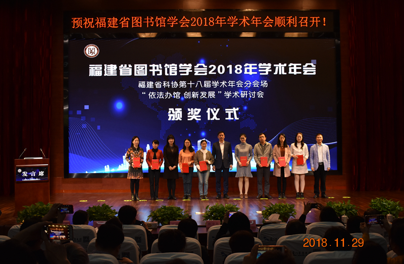 开幕式期间,民间南音表演团为代表们带来了闽南文化大餐——国家级非物质文化遗产南音现场弹唱。就着浓浓的闽南气息,嘉宾为福建省图书馆学会第十三届优秀论文获奖代表和2018年年会征文获奖代表颁发证书。