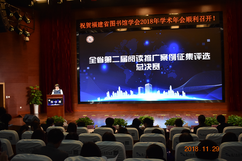 29日下午,全省第二届阅读推广案例征集评选活动总决赛也在主会场如火如荼地开展,来自高校馆和公共馆的12家入围单位代表,就本馆生动的阅读推广案例进行精彩解说。经过激烈角逐,2个馆获得一等奖,4个馆获得二等奖,6个馆获得三等奖。在阅读推广火热开展的同时,福建省图书馆学会学术年会参考咨询分论坛也在有序进行中,会议邀请江夏学院詹仁锋研究馆员作“图书馆参考咨询工作的变革”报告,二位获本次学术年会征文一等奖的作者在论坛上作了论文交流,同时还召开了参考咨询委员会2018年工作会议。