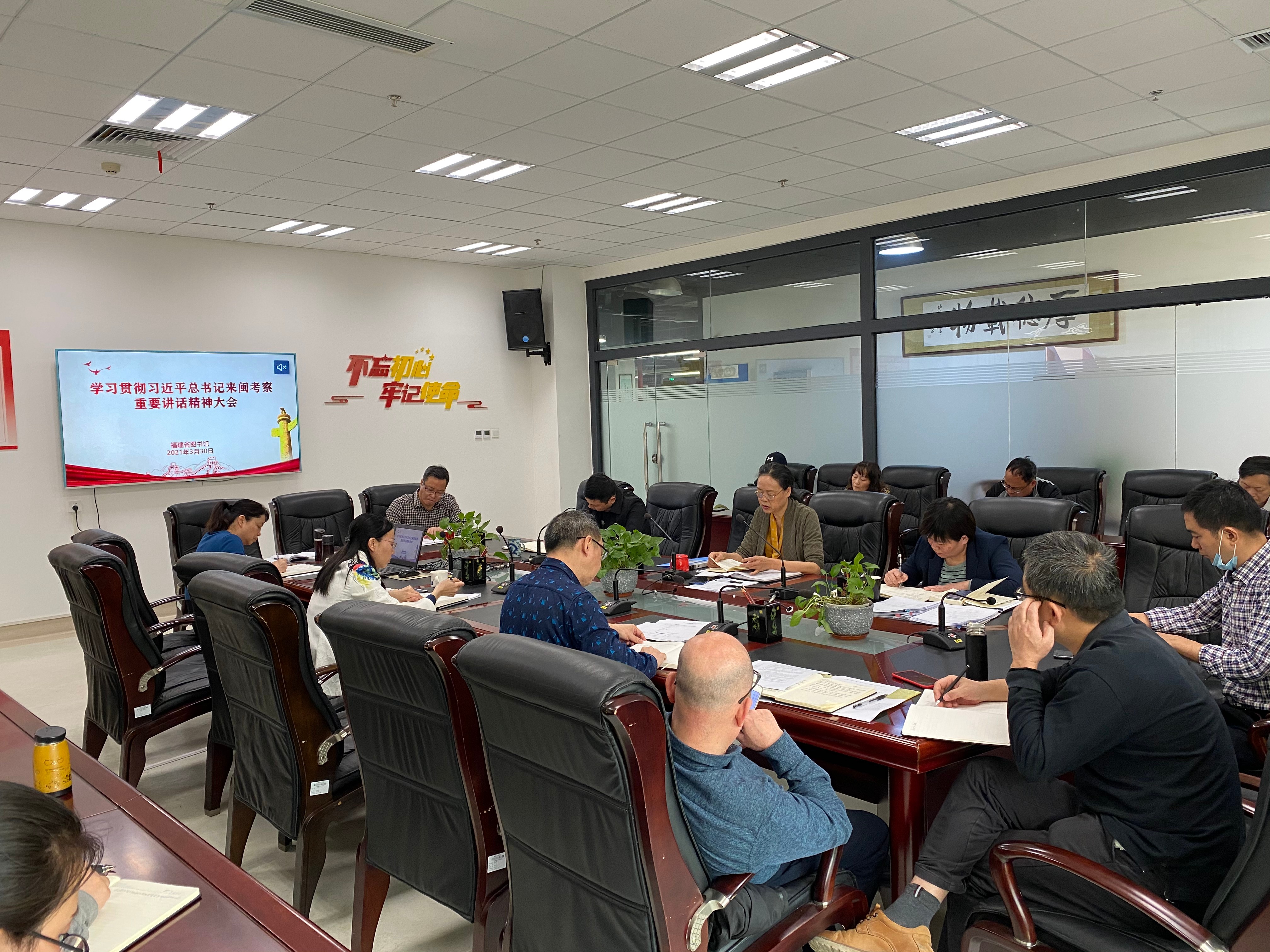 3月30日、4月6日馆领导班子结合“再学习、再调研、再落实”活动,通过召开馆务扩大会议传达省文旅厅专题学习会议精神,集中学习宣传贯彻习近平总书记来闽考察重要讲话精神,认真领会其精神内涵,要求全体领导干部自觉把学习宣传贯彻习近平总书记来闽考察重要讲话精神作为当前和今后一段时间的首要政治任务和长期战略任务。