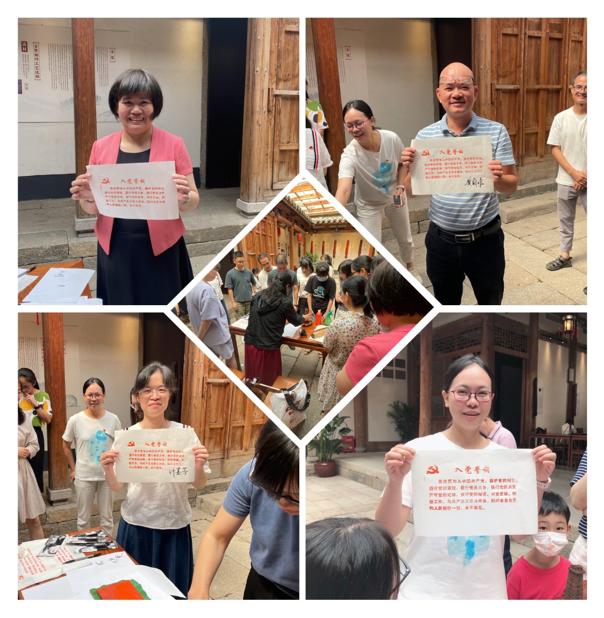 现场党员纷纷积极亲手拓印入党誓词,并庄重签下自己的姓名