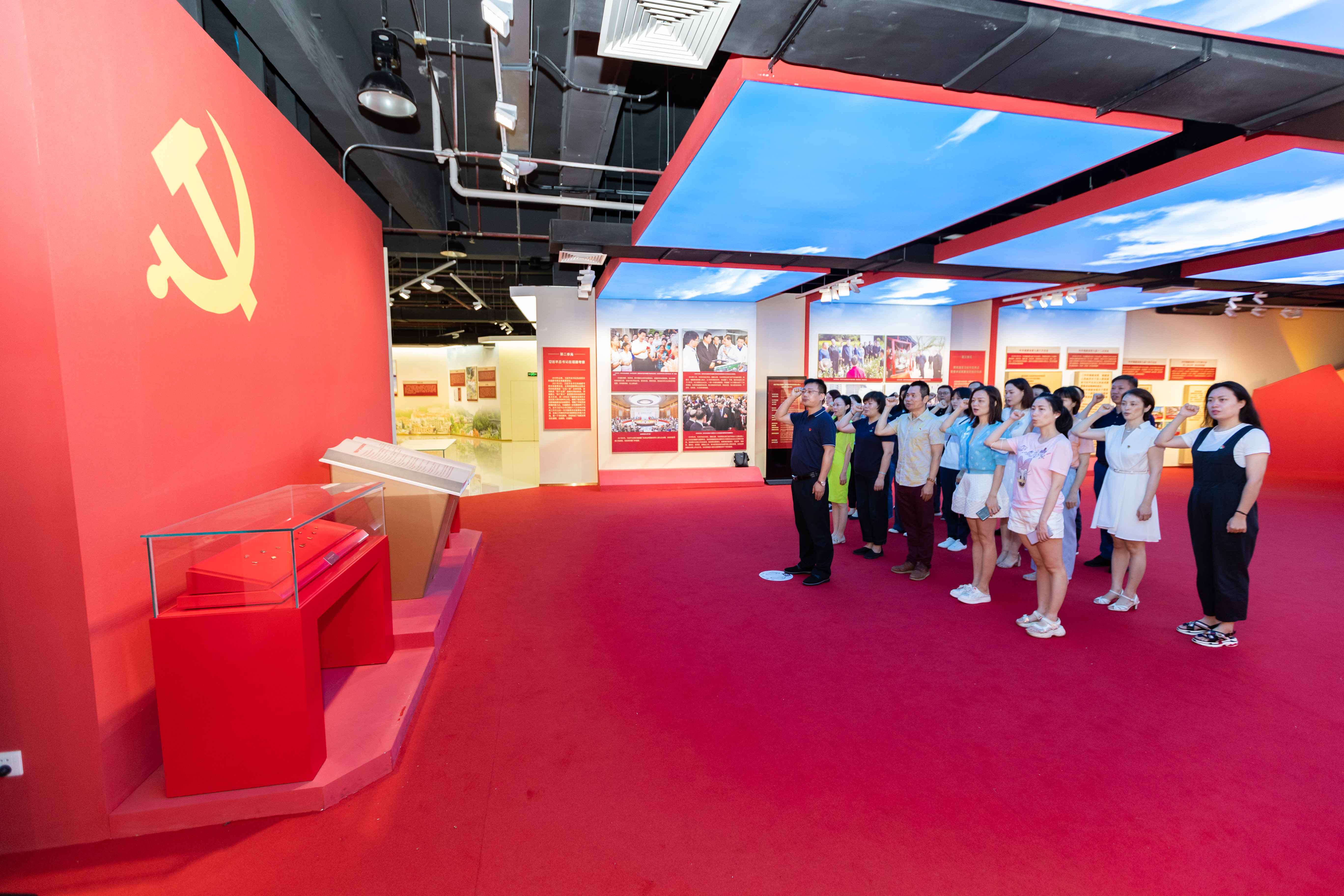 参观结束后,全体党员面向鲜红的中国共产党党旗,举起右拳,重温入党誓词,再一次庄严地作出自己对党的承诺。