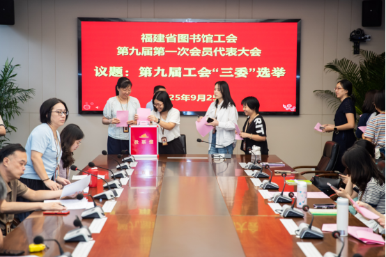 2025年9月25日上午,福建省图书馆工会第九届第一次会员代表大会在福建省图书馆二楼会议室成功召开。会议严格依照《中华人民共和国工会法》《中国工会章程》《工会基层组织选举工作条例》《基层工会会员代表大会条例》和《福建省直机关基层工会换届工作规范》等有关规定,规范有序完成换届选举议程,选举产生了新一届工会委员会、工会经费审查委员会及工会女职工委员会。