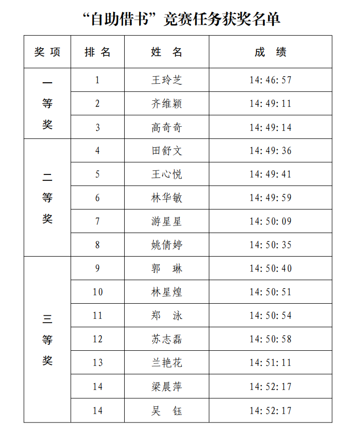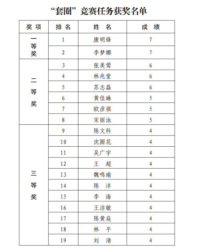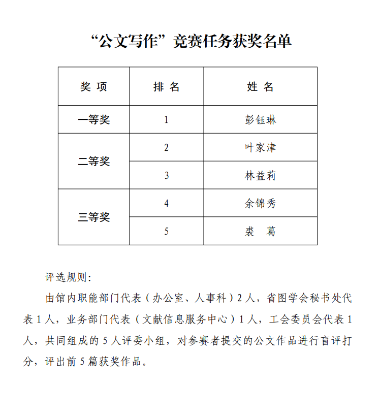 经过一番激烈角逐,福建省图书馆工会2023年“奋进新征程 建功新福建”主题系列技能竞赛活动各项目(含自助借书、公文写作、物资抢险、套圈、跳绳5个项目)获奖名单出炉。现予公布,名单附后。
