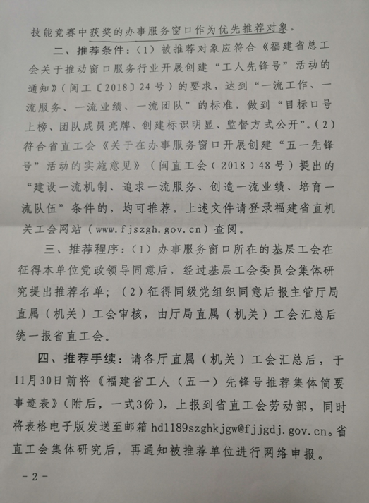 附件: 关于推荐2020年窗口服务行业争创工人(五一)先锋号竞赛优胜集体的通知
