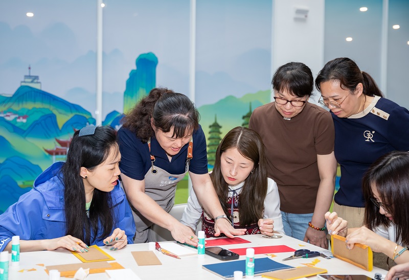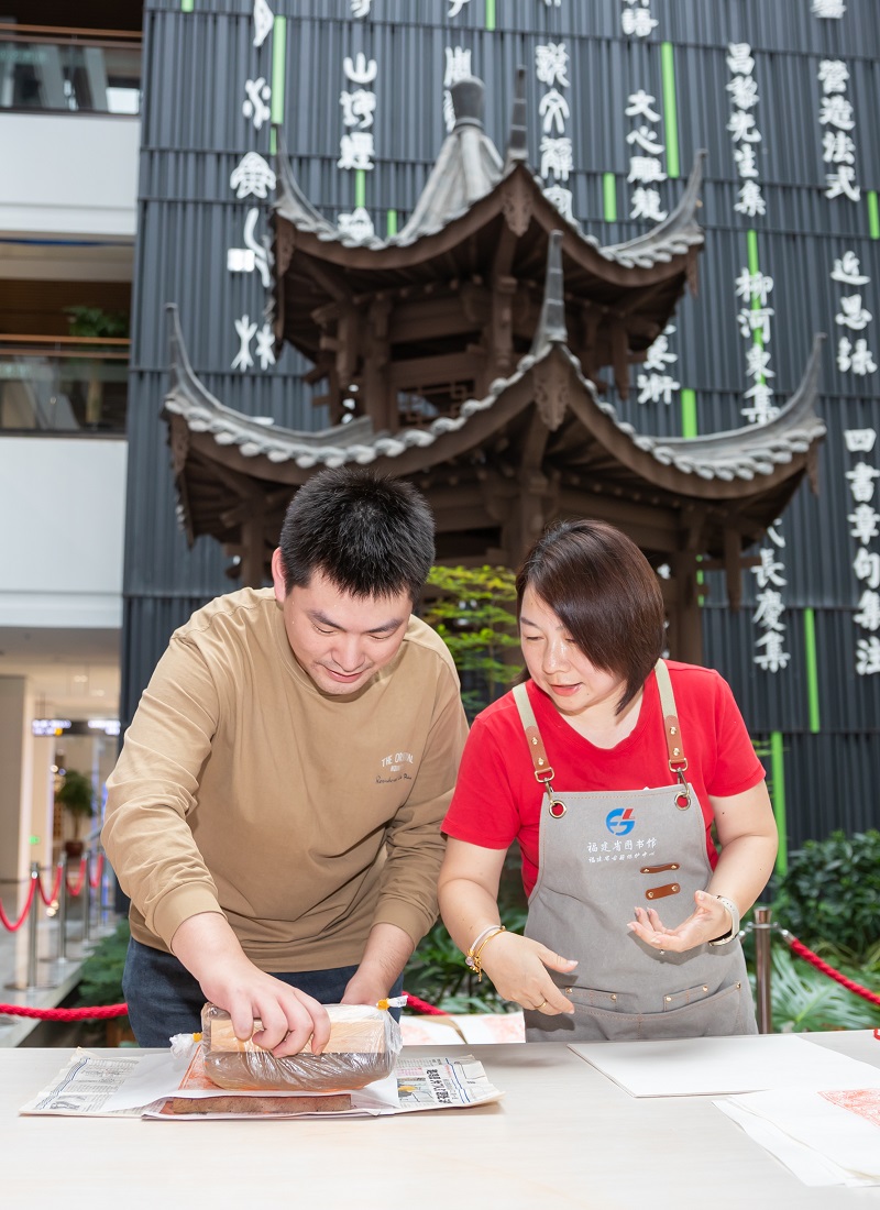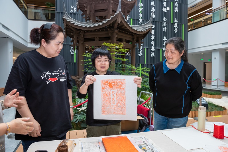活动现场还设有“状元及第”雕版印刷体验项目。在工作人员的指导下,参与者用朱液印刷“状元及第”雕版,既体验了雕版印刷技艺,又能把这份“好彩头”带给家中即将参加中高考的孩子们。
