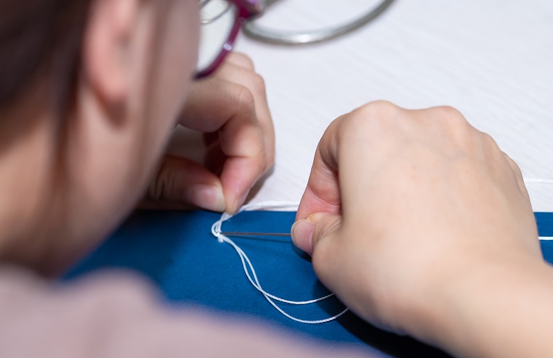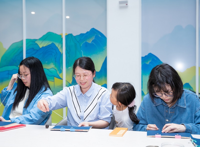 活动现场,特藏中心古籍修复老师首先向干部职工讲解卷轴装、旋风装、经折装、蝴蝶装、包背装、线装等纸书装帧形式的演变,并现场示范线装、经折装的制作方法及书签的规范贴法。随后,参赛人员在古籍修复老师的指导下,用针线、书页等材料,从包角、穿针引线,到打孔,再到打结藏线,最后成书。在一针一线、一纸一页中,参赛人员近距离对话一段历史,感受文化在传承中的进步与革新,感知典籍的温度和力量。活动邀请专业人员作为评委,对参赛作品进行评定,最终评出一等奖1名、二等奖2名、三等奖3名。
