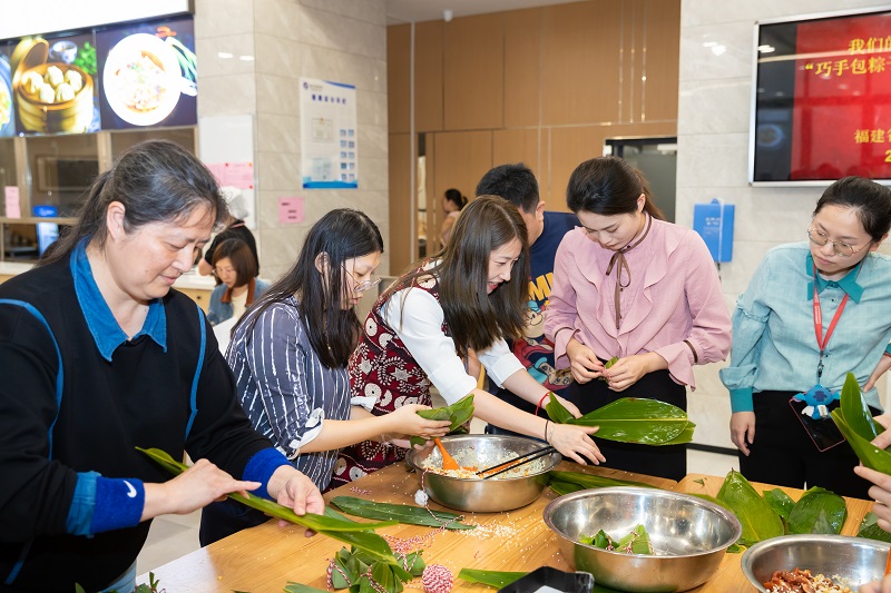 6月6日下午,为传承和弘扬中华优秀传统文化,营造热闹、祥和的节日氛围,福建省图书馆工会在职工食堂组织开展“我们的节日·端午”巧手包粽子比赛。