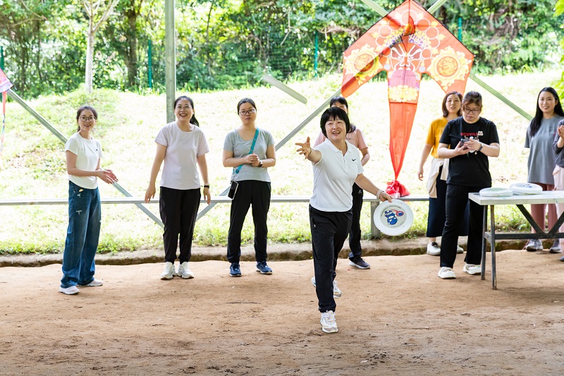 飞云峡风景区位于福州北郊寿山乡,景区山高林密,山泉清澈。在景区内,可以漫步古道,欣赏原生态自然景观,在舒展身心中体验负氧离子森林氧吧。同时,景区内还设有高空滑索、玻璃吊桥、玻璃漂流、玻璃旱滑、越野卡丁车、彩虹滑道、水上自行车、水上滚筒、水上拓展、九宫八卦阵等十余项网红打卡体验项目。团建活动在飞盘学习中拉开序幕,在教练的讲解下,职工学习飞盘的飞、接等技巧,随后组成小分队进行飞盘比赛。飞盘比赛结束后,职工在有效保障安全的前提下,可以选择体验惊险、刺激的网红打卡项目,穿梭于山林之间,感受鸟语花香,体验速度与激情。