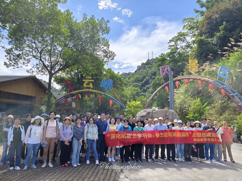 为深入学习贯彻习近平新时代中国特色社会主义思想,丰富我馆干部职工的精神文化生活,促进职工身心健康,增强团队凝聚力,6月20日和27日,福建省图书馆工会分两批次组织全馆职工前往福州市晋安区寿山乡飞云峡风景区开展“深化拓展‘三争’行动 奋力谱写闽图篇章”主题户外团建活动。