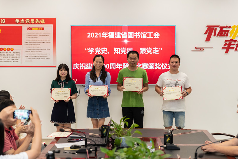 生活需要仪式,工作更需要仪式!为通过仪式进一步激发广大馆员职工的工作热情和干劲,6月10日福建省图书馆举办“学党史、知党恩、跟党走”庆祝建党100周年登鼓山健身比赛活动颁奖典礼。馆长郑智明、书记叶建勤、副馆长陈顺出席颁奖典礼,并为获奖馆员颁奖。本次比赛设立了4个组别,共评出一等奖4名、二等奖8名、三等奖15名。
