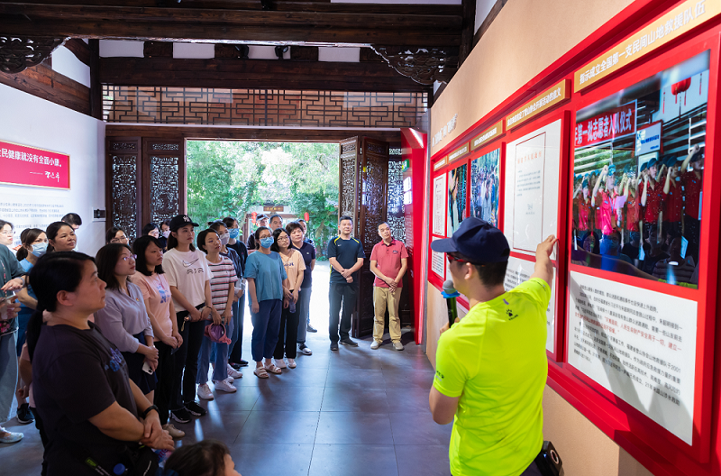 在福建省登山协会全民健身主题展厅,工会会员们在讲解员的带领下,了解福建省登山协会的发展历程,并通过救援队队员讲述亲身经历,感悟救援队员们牢记嘱托,发挥专业优势维护人民群众生命安全的志愿精神。