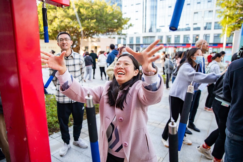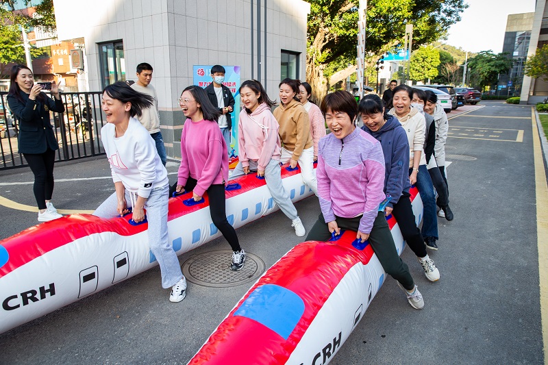 随后,各会员代表移步省图书馆正门广场参加趣味文体活动。本次趣味文体活动共设置了眼疾手快、穿越火线、欢乐同行、和谐并进、心有灵犀等5个团体项目。在以趣味性为主的基础上,活动侧重激发参赛队员们团队作战、分工协作、携手并进的意识和能力。在你追我赶间,大家不仅打破了单位与单位间的壁垒,实现“破冰”,更展现了新时代新征程省直文旅系统干部奋勇拼搏的精神面貌和融洽和谐的团队形象。